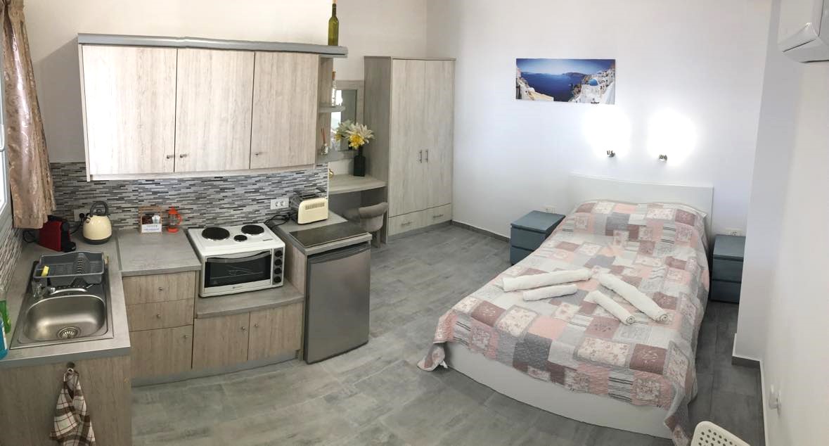 The apartment construction was finished in 2019. It is open plan which makes the apartment bright and airy. It is furnished with a large double bed, Kitchen, dining area, dressing table, wardrobes and modern bathroom.